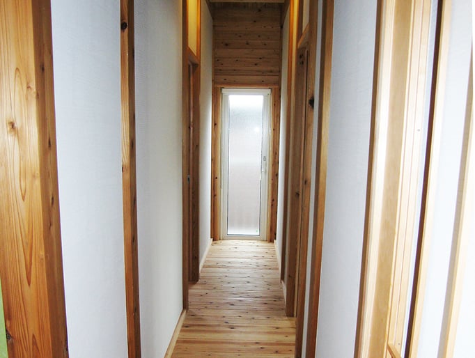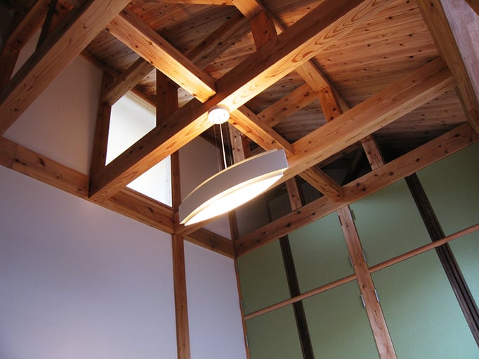 天井、壁、床に3.5寸及び4寸角の杉柱を