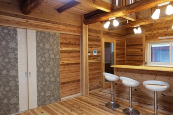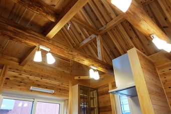 1.天井材は105x50の杉材を敷きつめて